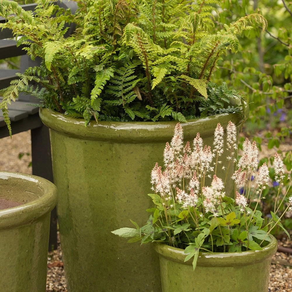 Refined and classic, these glossy green pots are a lovely foil for both flowers and greenery. The larger sizes work well for feature shrubs or small trees to create an elegant outdoor focal point.