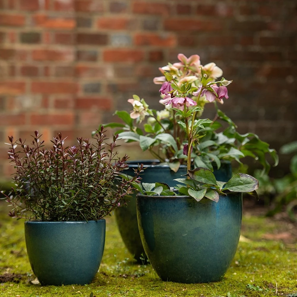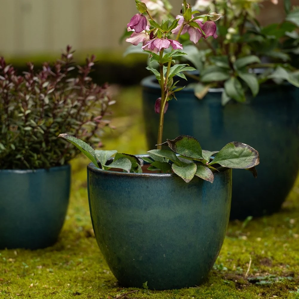 These classic Vietnamese glazed ceramic pots are great for bringing extra colour and vibrancy to the garden. The aqua blue finish is blended rather than solid colour which gives the glaze more life and texture.